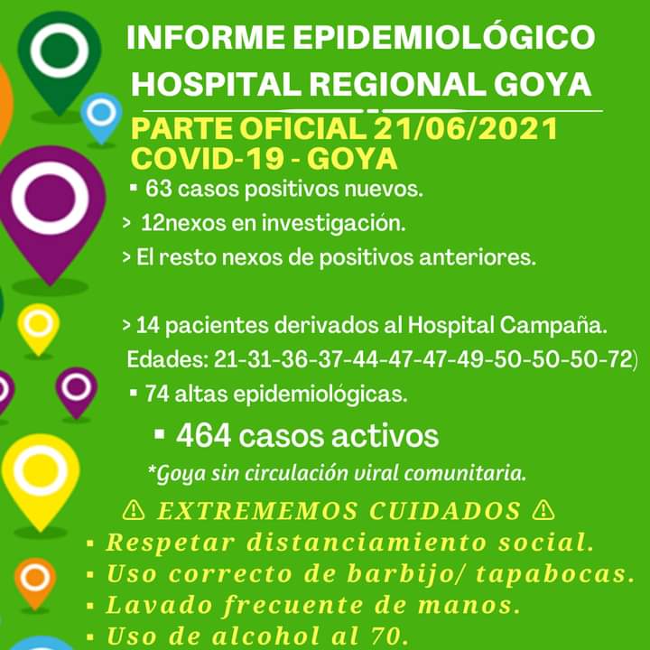 Noticias14 pacientes fueron derivados al Hospital de Campaña 21 junio, 2021 Preocupantes cifras. Goya registró 63 casos nuevos de coronavirus y trasladó al Hospital de Campaña a 14 pacientes durante este dia lunes.