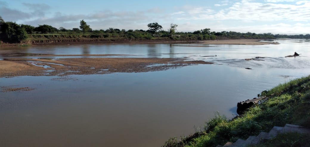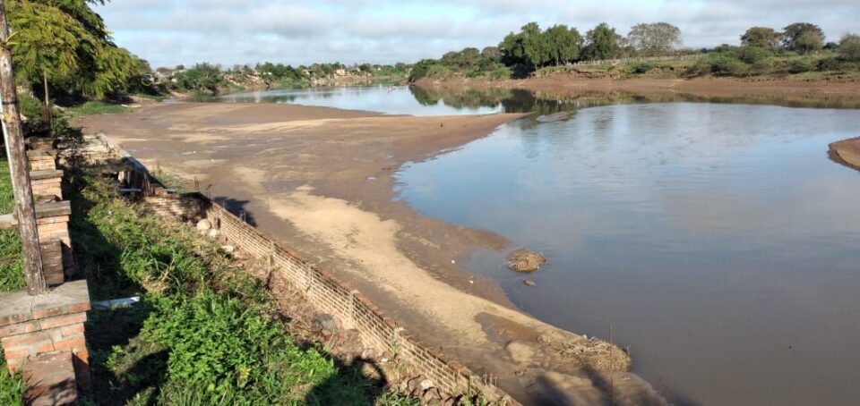 El riacho en algunos sectores está prácticamente seco, y el hilo de agua apenas cruza hasta los islotes de enfrente.