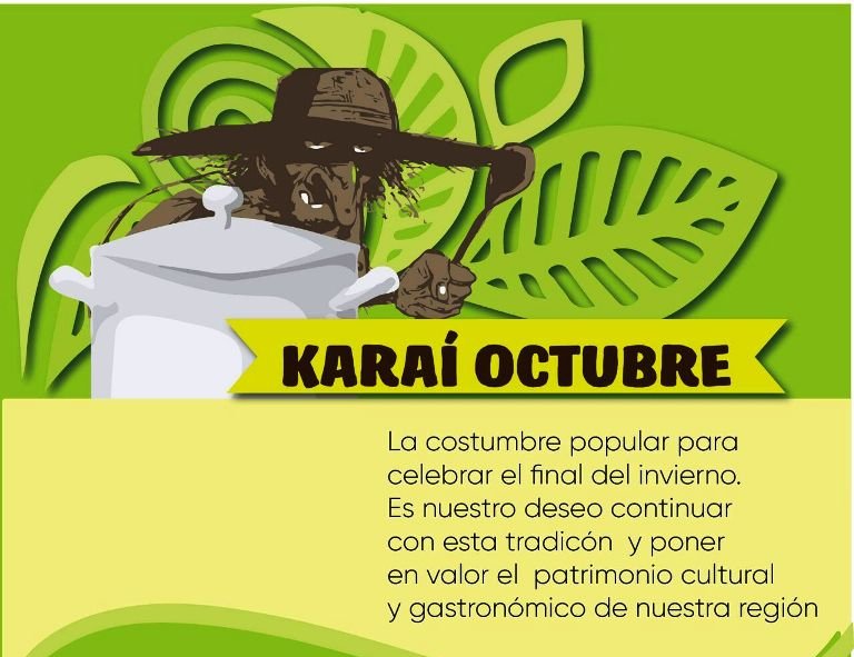 El Karaí (señor) Octubre es, según la creencia popular, un duende maléficoque sale todos los 1 de octubre a recorrer las casas y ver quiénes tienen suficiente comida. Es un duende inspector que va mirando si la gente sembró y trabajó durante el año y supo guardar para los meses en que no hay cosecha. Ese día al pasar por las casas debe comprobar que hay suficiente comida y que la convidan a sus vecinos. A quienes no cuidaron los castiga con miseria hasta fin de año y a los que tienen para convidar los premia con abundancias.