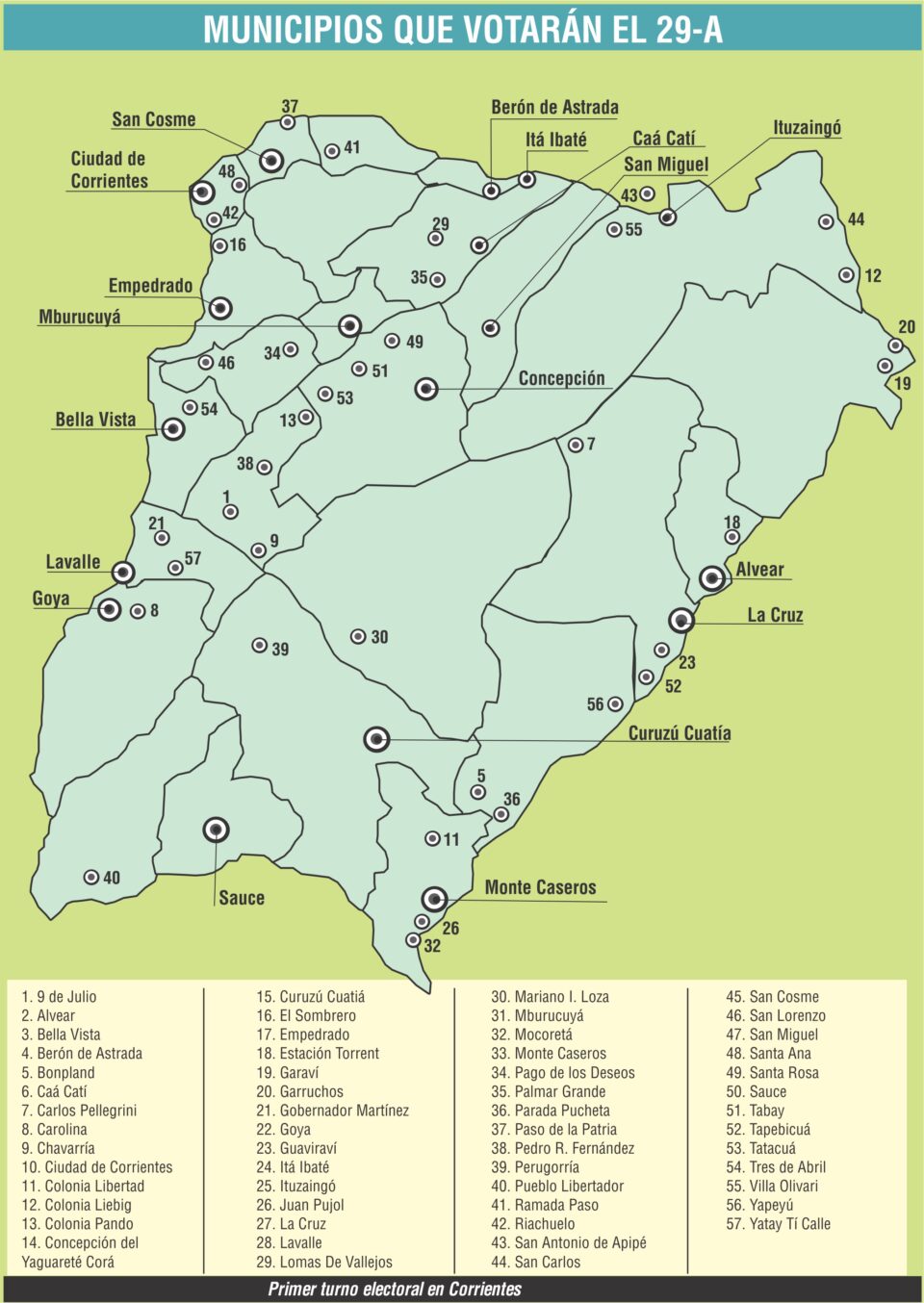 De esta manera, Capital y municipios que concentran una cantidad considerable de sufragantes – como Goya, Curuzú Cuatiá, Bella Vista, Ituzaingó y Monte Caseros – llamaron a votar el 29-A para intendentes, vices y concejales.
