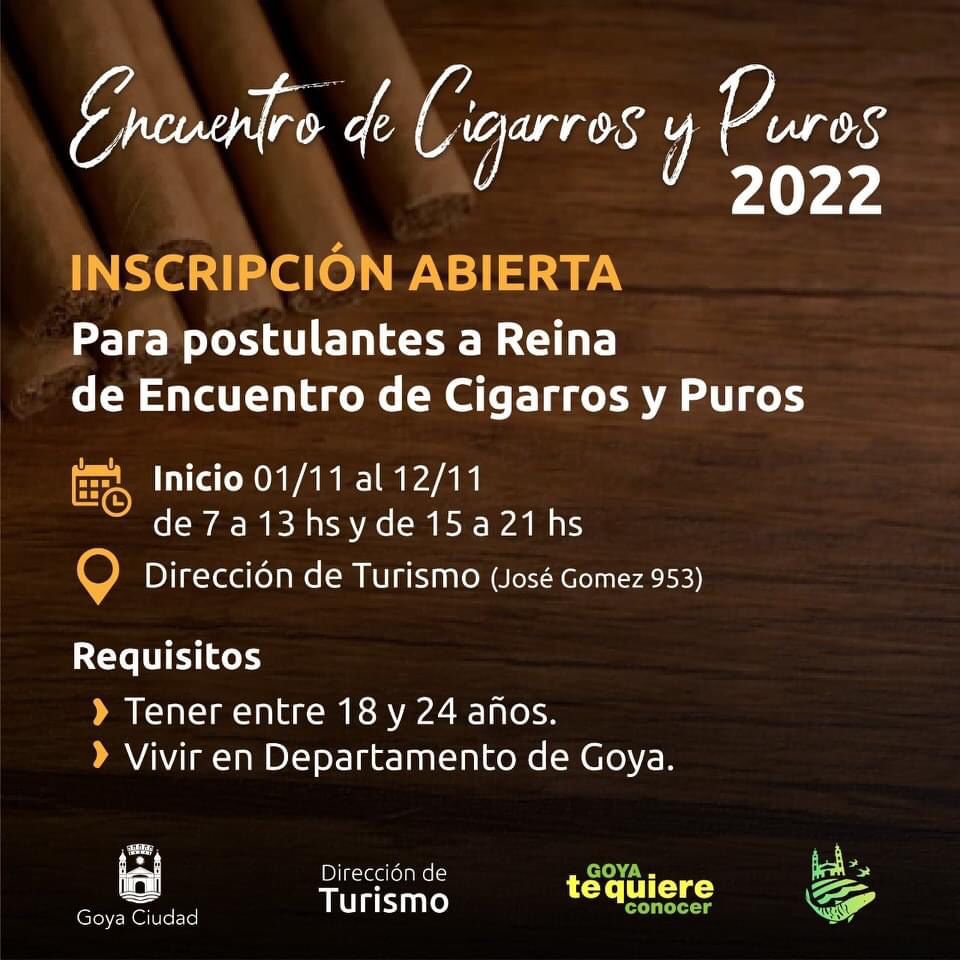La Dirección de Turismo dio a conocer sobre la apertura de postulantes a reina, los requisitos son tener entre 18 y 24 años y vivir en el Departamento de Goya. Las interesadas deben dirigirse a la Dirección de Turismo de 7 a 13 horas y de 15 a 21 horas.