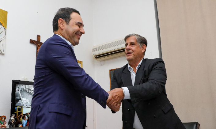 Pasadas las 21, Valdés llegó junto a la senadora nacional Gabriela Valenzuela al edificio municipal situado en la esquina de 25 de Mayo y San Martín del centro de la ciudad, siendo cálidamente recibido por el intendente Benítez, quien invitó en la ocasión al Gobernador a ingresar a su despacho. Allí mismo, ambos firmaron dos convenios de cooperación entre el Gobierno de Corrientes y la Municipalidad de Esquina: en el primero la Provincia se compromete a financiar al Municipio, la obra de entubado y alcantarillado de las calles Berón de Astrada y General Paz por un monto de 497 millones de pesos; y en el segundo, la Provincia se compromete a financiar al Municipio de Esquina la construcción de 20 cuadras de cordón cuneta con ripio por un monto de 300 millones de pesos. En tanto, tras rubricar estos documento, Valdés se comprometió nuevamente con el intendente Benitez, asegurando que «desde la Provincia vamos a seguir embelleciendo Esquina con más obras en la Costanera».