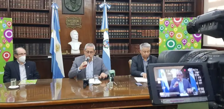 Los detalles se comunicaron durante la mañana en una conferencia de prensa encabezada por el ministro de Hacienda, Marcelo Rivas Piasentini, acompañado por el subsecretario de Finanzas, Juan Pablo Peloso, y el tesorero general de la Provincia, Jorge Gazzo.