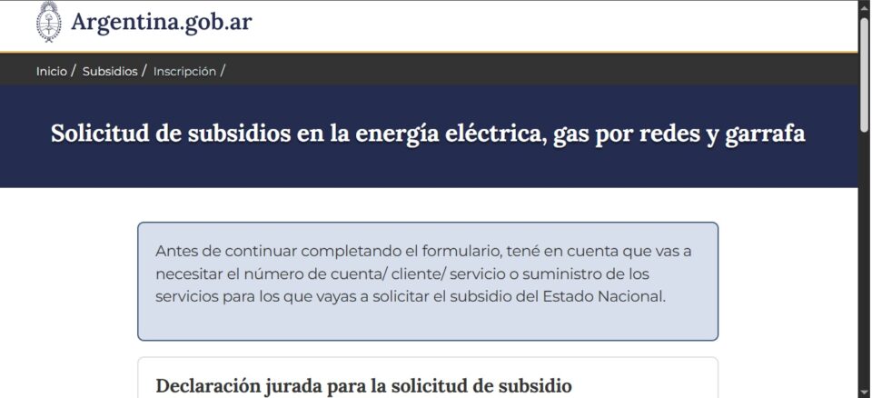 Por medio del formulario de Declaración Jurada los interesados en conservar los subsidios energéticos deberán informar los datos personales y del grupo conviviente, ingresos del hogar, fuentes de suministro energético y necesidad de acceder a subsidios.