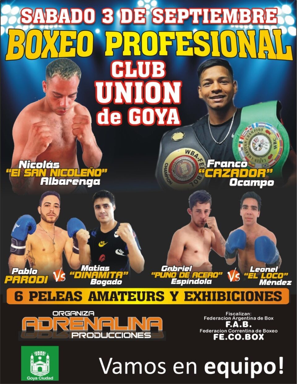 Esta velada pugilística cuenta con el auspicio de la Municipalidad de Goya.