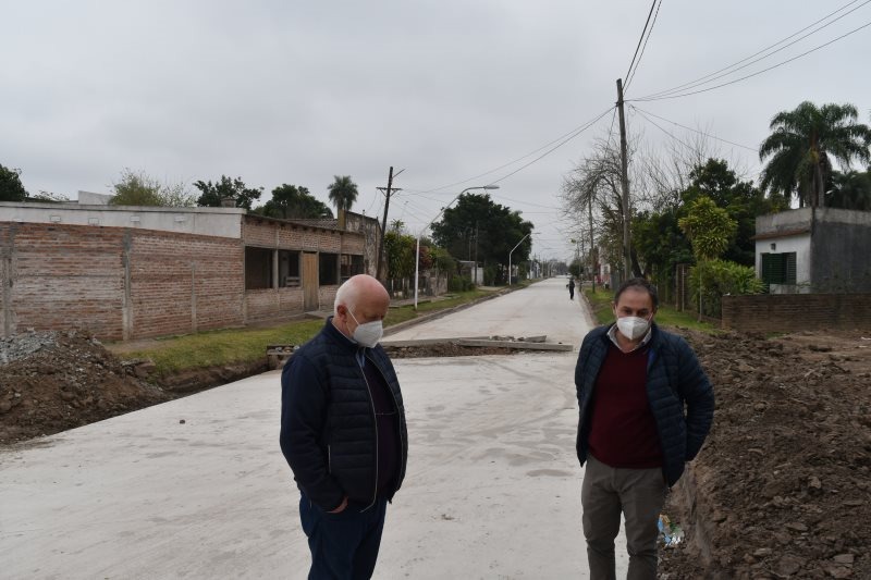 El antiguo y mal hecho pavimento de asfalto en caliente que hizo la gestión municipal anterior se ha vuelto a construir, esta vez con hormigón, de tal manera de restaurar las condiciones de transitabilidad para los vehículos en la calle Belgrano al Sur, desde la «Vía» a avenida Sarmiento.