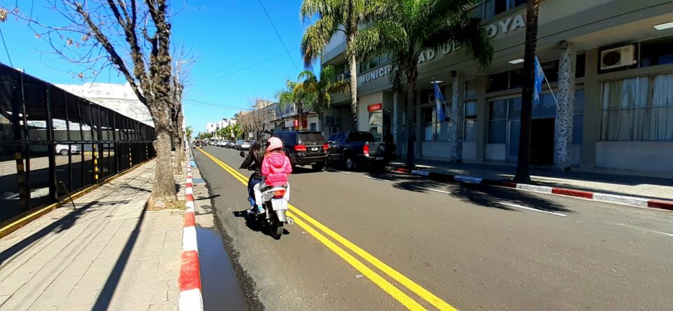 Las personas que se trasladan en bicicleta o moto por la repavimentada calle Colón, ahora cuentan con dos kilómetros de ciclovía, dos líneas amarillas que van desde Madariaga hasta Sarmiento la delimitan, con el propósito de hacer el tránsito más seguro y eficiente.