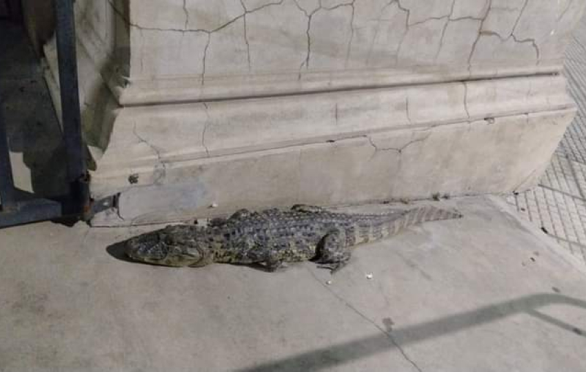 El yacaré estaba a metros del ingreso de las oficinas de un edificio público ubicado en la esquina mencionada, en pleno microcentro goyano.