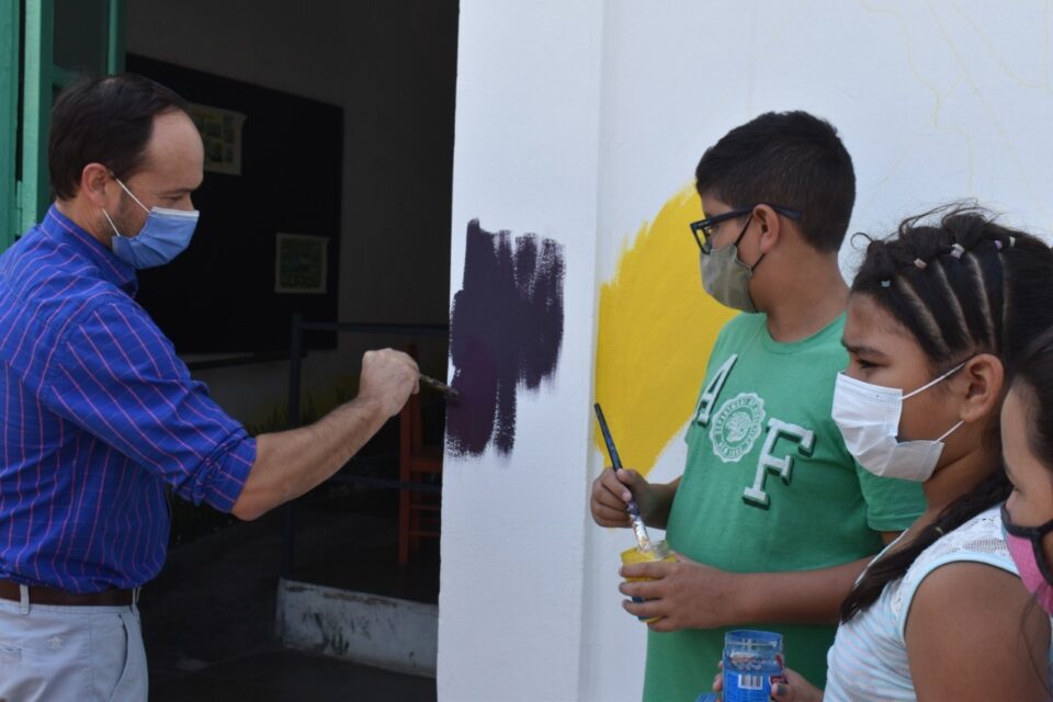 Este jueves a la mañana se inició la obra de pintura en la fachada de la Escuela Municipal de Artes Plásticas “Justo Gutiérrez” (EMAP). Este grato momento fue compartido en el lugar por alumnos; ex alumnos, docentes y por el Intendente Mariano Hormaechea quien estuvo acompañado por la Secretaría de Educación, Sonia Espina.
