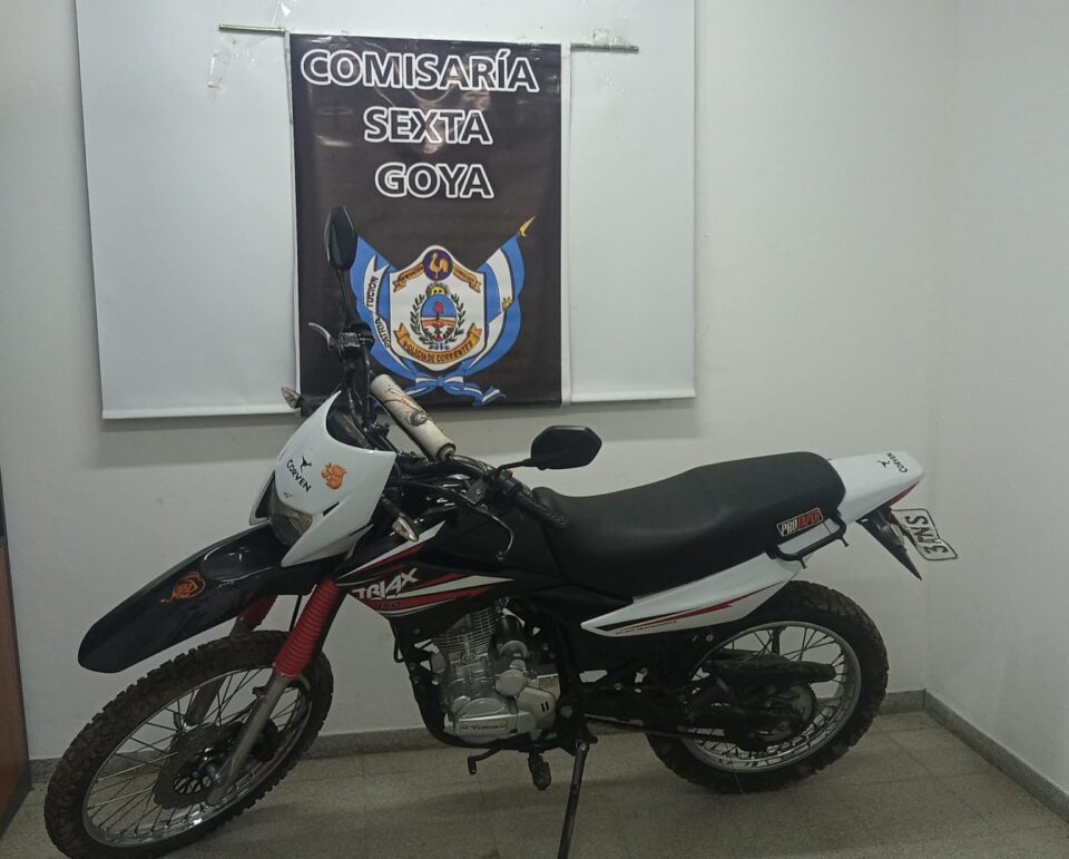 En horas de la tarde del Martes, personal de la Comisaría Seccional Sexta de Goya, a cargo del comisario inspector Walter López, en el marco de tareas investigativas, tomó conocimiento a través de vecinos del Paraje Isla Sola sobre el hallazgo de una motocicleta marca Corven, tipo cross, color negra y blanca, en aparente estado de abandono.