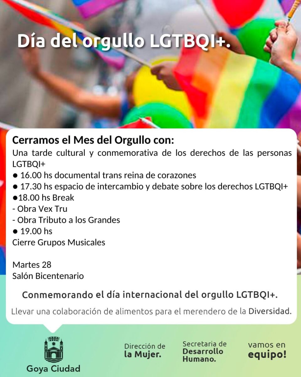 Estarán las Bandas Musicales La TOXI-K y LA CUBANA. La Secretaría de Desarrollo Humano de la Municipalidad, a través de la Dirección de la Mujer, invita a la jornada cultural de cierre del mes del orgullo, este martes desde las 16 horas en Casa del Bicentenario.