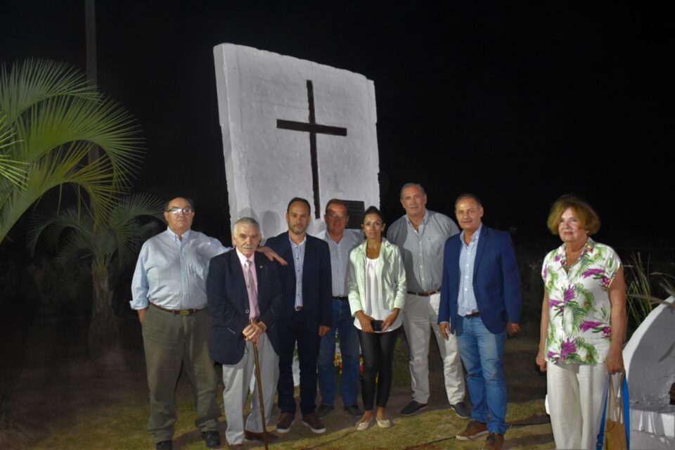 El intendente de Goya, Mariano Hormaechea y los vecinos: Ester Encinas y David Espindola depositaron una ofrenda floral al pie del monolito que se encuentra a 35 km de nuestra ciudad, tras lo cual se impuso el minuto de silencio.