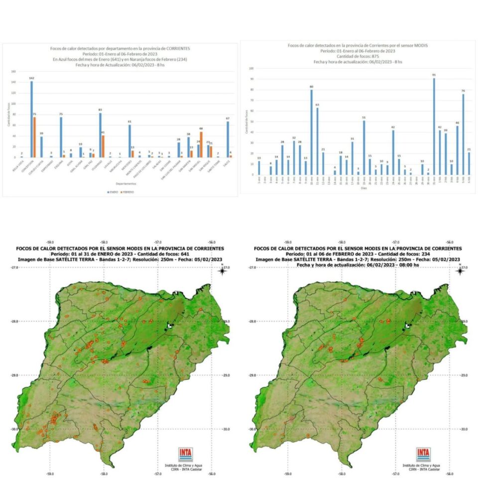 El análisis de los datos, realizados por la Experimental Agropecuaria Corrientes del INTA, detalla que “en el mes de enero de 2023 se contabilizaron 641 focos de calor y en lo que va de febrero se contabilizaron 234 focos”.