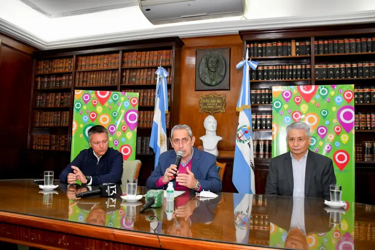 La conferencia estuvo encabezada por el ministro de Hacienda, Marcelo Rivas Piasentini, acompañado por los subsecretarios de esa cartera, Patricio Carando, y de Finanzas, Juan Pablo Peloso.