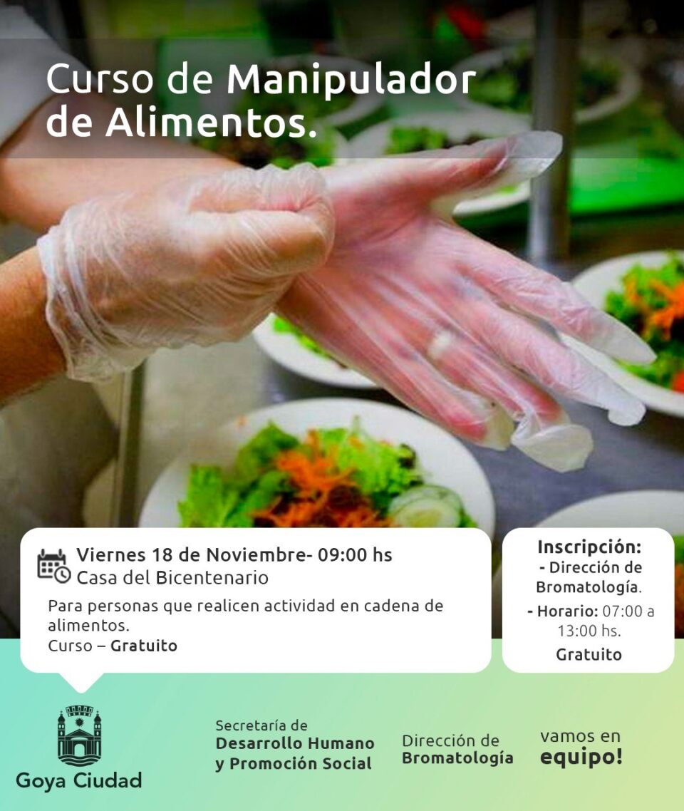 Viernes 18 de noviembre en Casa del Bicentenario a las 9 horas. La Dirección de Bromatología del Municipio, informó que este mes de noviembre, la capacitación para los manipuladores de alimentos, se realizará el próximo viernes 18 de noviembre.El curso destinado a las personas que realicen actividad en Cadena de Alimentos, se ofrece cada mes de manera gratuita, en noviembre la fecha es el viernes 18 de noviembre a las 9 horas, en Casa del Bicentenario.Los interesados podrán inscribirse, en la Dirección de Bromatología, de lunes a viernes de 7 a 13 horas.