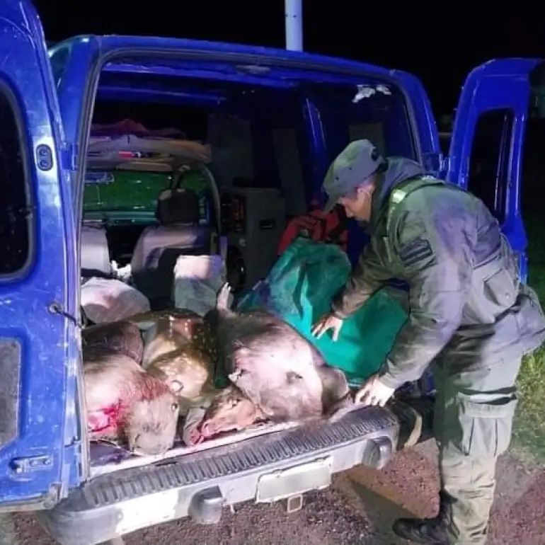 Interceptaron un vehículo utilitario que era manejado un hombre. Se constató que transportaba dos carpinchos y un ciervo axis, todos faenados. Además, llevaba un rifle y una escopeta.