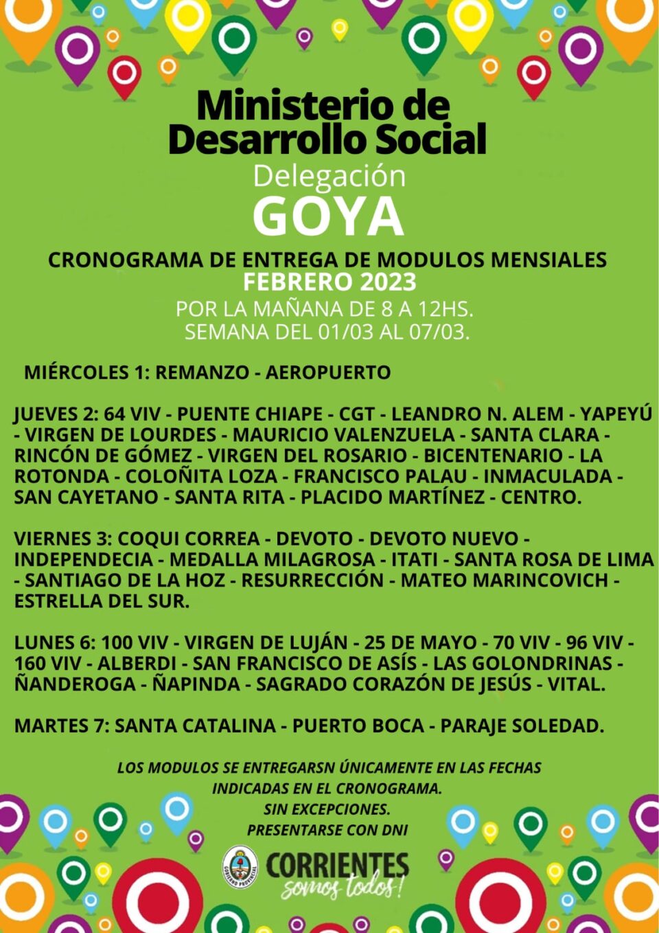 Desde este miércoles 22 la Delegación Goya de Desarrollo Social inicia la distribución de los módulos alimentarios a los beneficiarios de los diferentes barrios de nuestra ciudad.