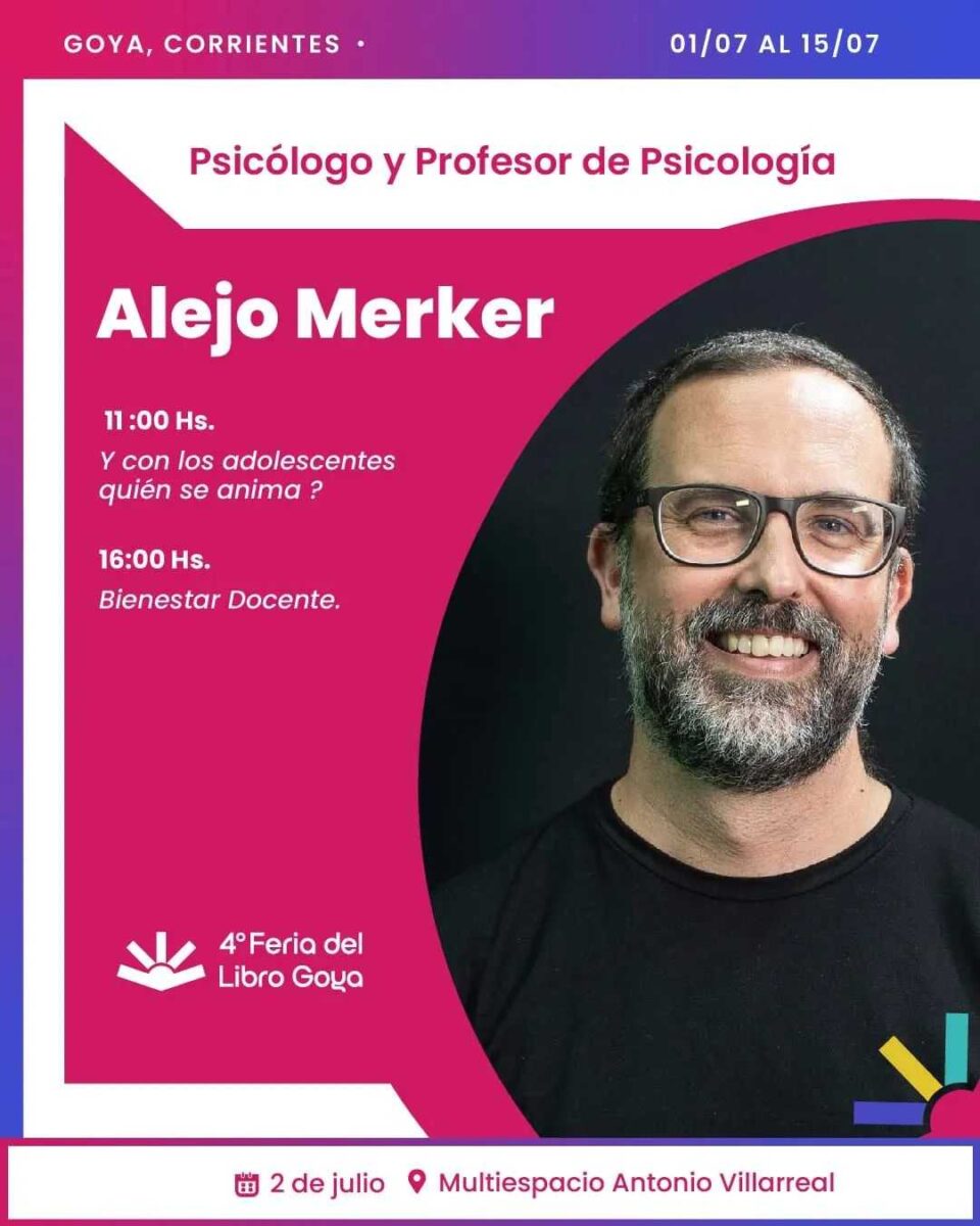 Sábado 2 de julio, presentación del psicólogo y profesor de psicología Alejo Merker, a las 11 charla “¿Y con los adolescentes quien se anima?