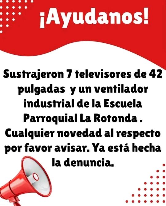 Sustrajeron 7 Televisores de 42″ y 1 ventilador industrial que formaban parte de los salones del nivel Primario y Secundario, eran parte del material didáctico y mobiliario de alumnos y docentes.
