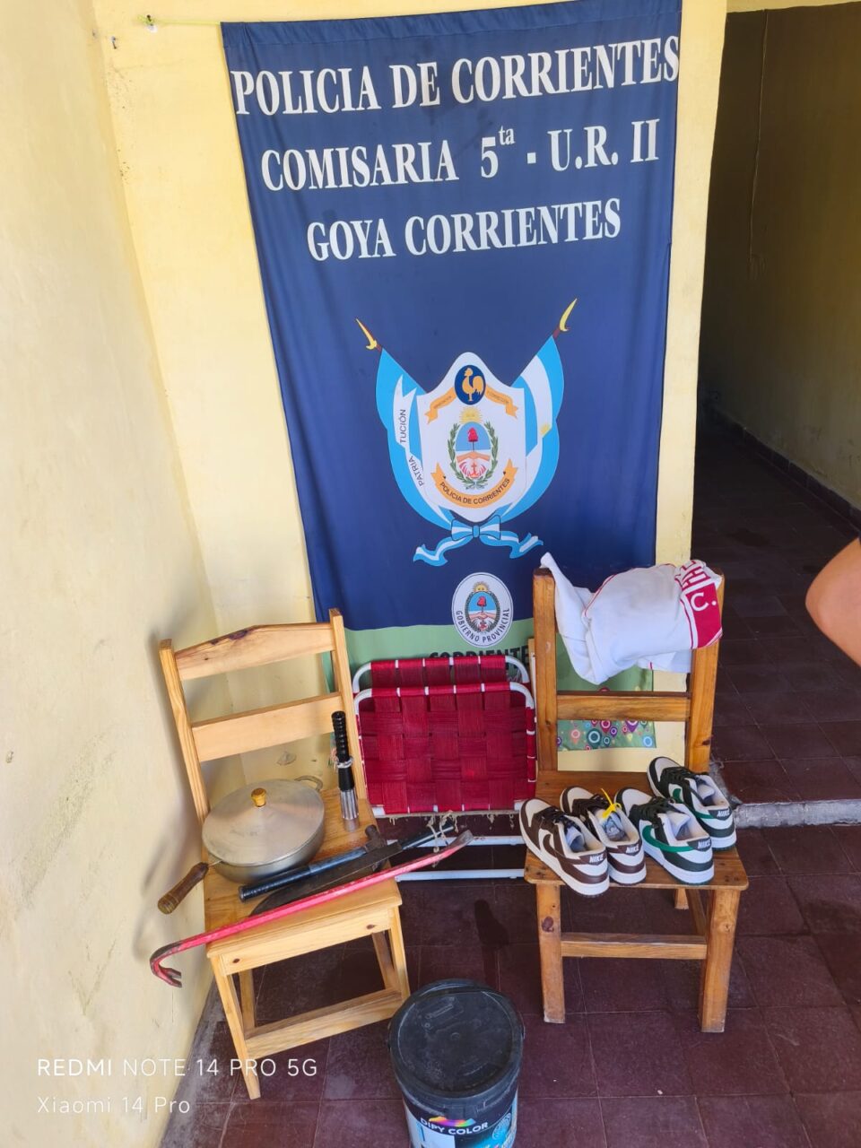 Entre los elementos recuperados se encuentran dos pares de zapatillas, un tarro de pintura, dos sillas de madera, una silleta, una campera deportiva, una olla y un martillo, entre otros efectos.