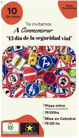 La Municipalidad de Goya, el Obispado y la Organización No Gubernamental “Estrellas Amarillas” invitan a participar el próximo lunes a las 19 horas, de la conmemoración del Día de la Seguridad Vial