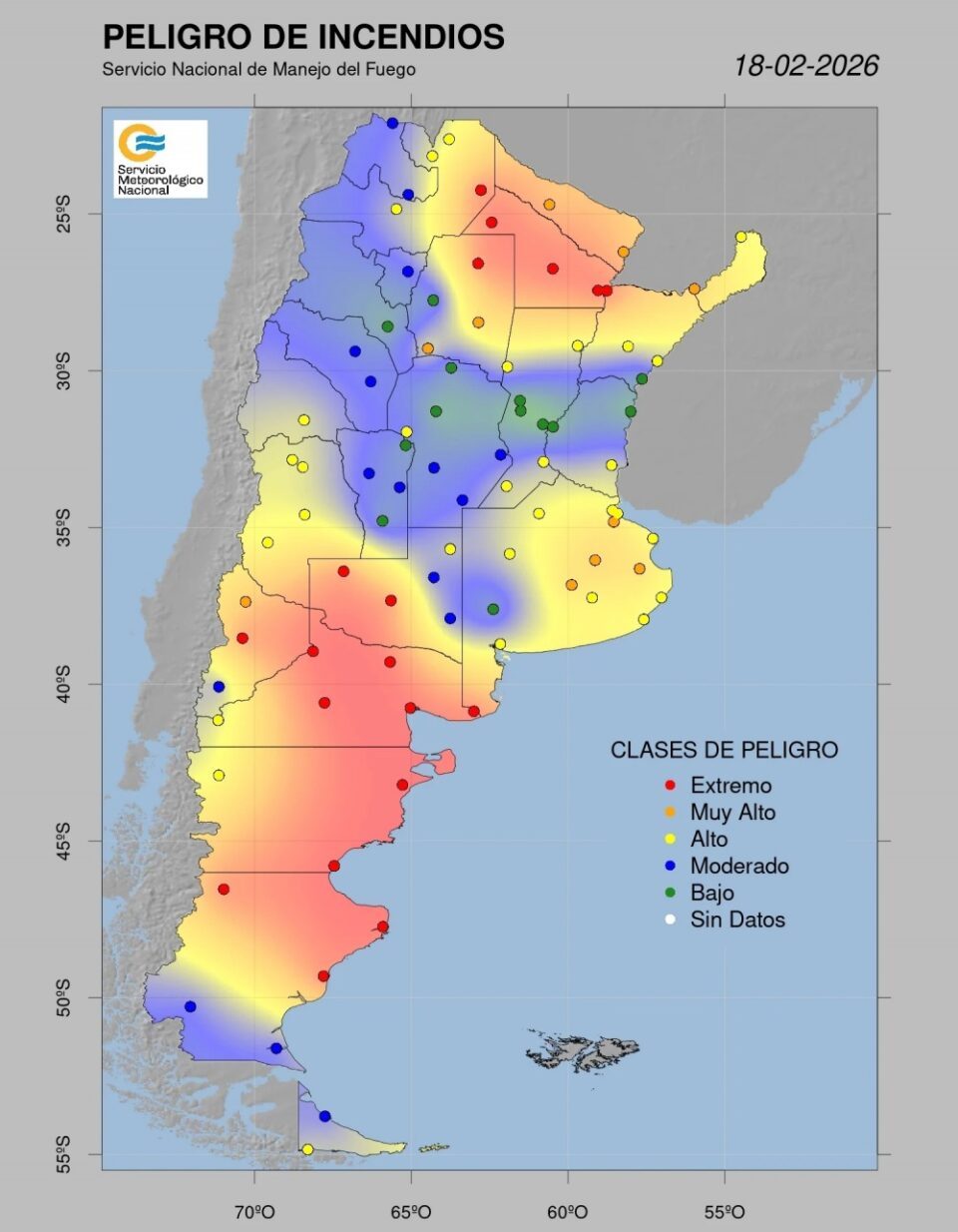 En coincidencia con ese mensaje, desde la Secretaría de Desarrollo Foresto Industrial del Ministerio de Producción, emitieron también para el 18 de febrero un índice de peligro extremo de incendios para toda la zona norte provincial.