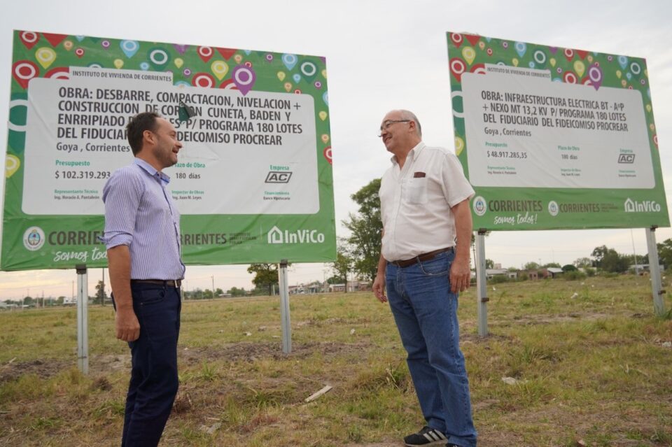 El doctor Mariano Hormaechea, intendente municipal acompañado del Secretario de Obras Públicas de Goya, Guillermo Peluffo, recorrieron y verificaron los avances de trabajos que se están llevando adelante a través del Instituto de Viviendas de la Provincia de Corrientes. Estos trabajos se ejecutan en el predio ubicado entre las calles N. Kirchner, Reconquista y San Luís, lindante a la Ruta N° 12, ubicados al este de la ciudad, son seis manzanas dónde provincia y municipio avanzan con distintos trabajos en estos terrenos.