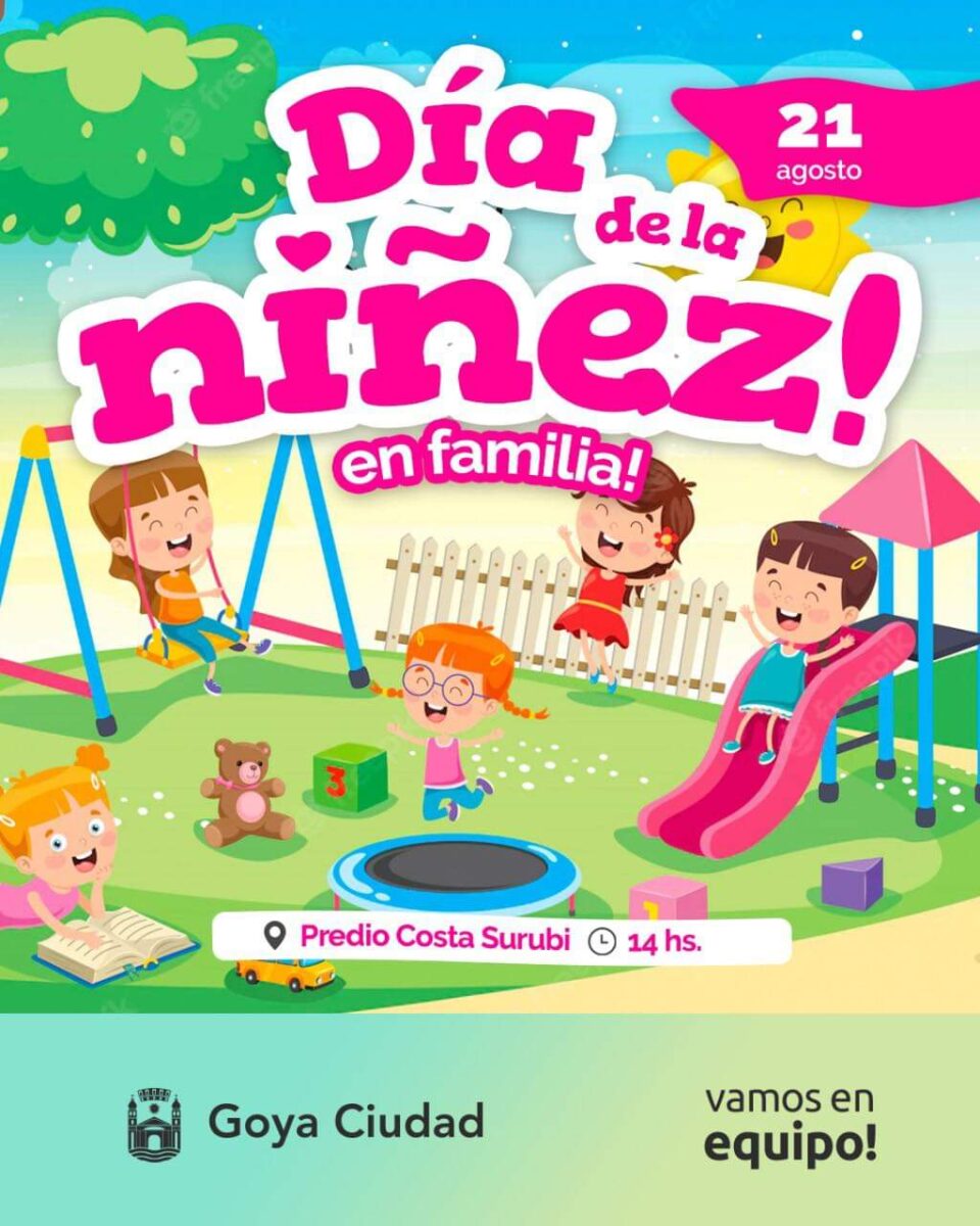 Desde la Secretaría de Desarrollo Humano de la Municipalidad de Goya se invita a todos los niños y niñas y a sus familias a celebrar el próximo domingo 21 de agosto, el “Día de la Niñez”, en Familia!!!