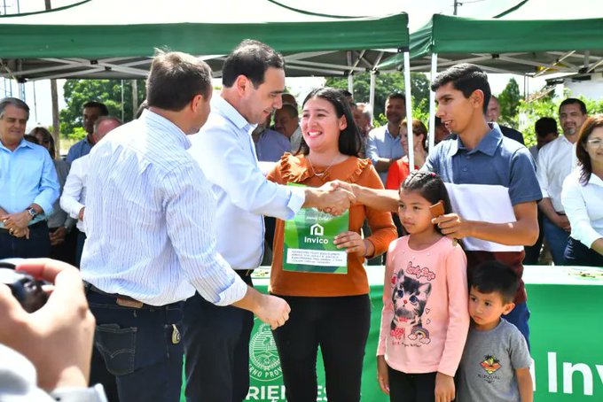 Tras su recorrida en Cecilio Echeverria, el gobernador Gustavo Valdés se trasladó a la localidad de Carolina para realizar la entrega de 10 viviendas del programa provincial denominado Oñondivé en el barrio Jesús de la Buena Esperanza.