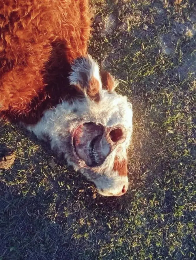 Según trascendió, el dueño del campo, mientras realizaba un recorrido halló un ternero muerto con una extraña marca en la cara. Al animal le faltaba un ojo con un corte redondo en un solo lado de la cabeza.