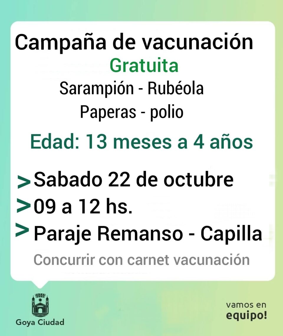 Igualmente, el sábado 22 se vacunará en El Remanso, en la Capilla a la mañana.