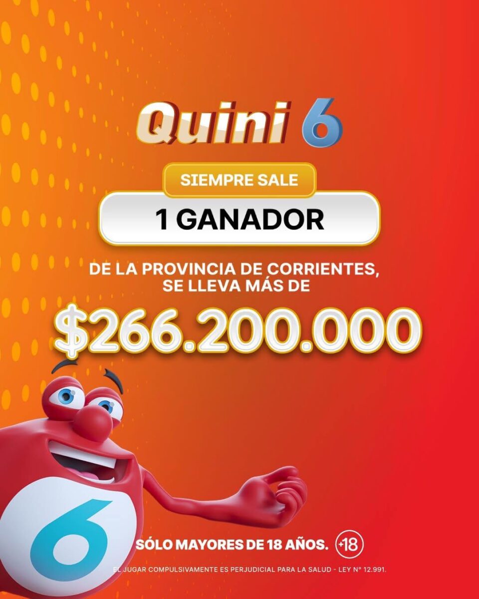 La cuenta oficial de Quini 6 informó que se se registró 1 sólo ganador el Miércoles, quien con 6 aciertos se llevó el pozo de la modalidad «Siempre Sale», de más de $266.200.000. «El nuevo millonario compró su ticket en una agencia de de Esquina. Los números favorecidos fueron 03-10-18-27-33-39», detallaron.