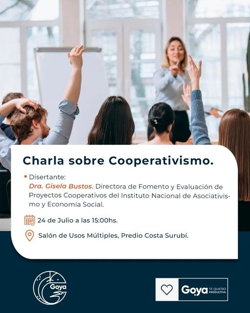 El encuentro es organizado por la Secretaría de Industria y Comercio de Goya, a cargo de María Paz Lampugnani. El evento servirá para conocer cuáles son las ventajas y beneficios que tienen las cooperativas.