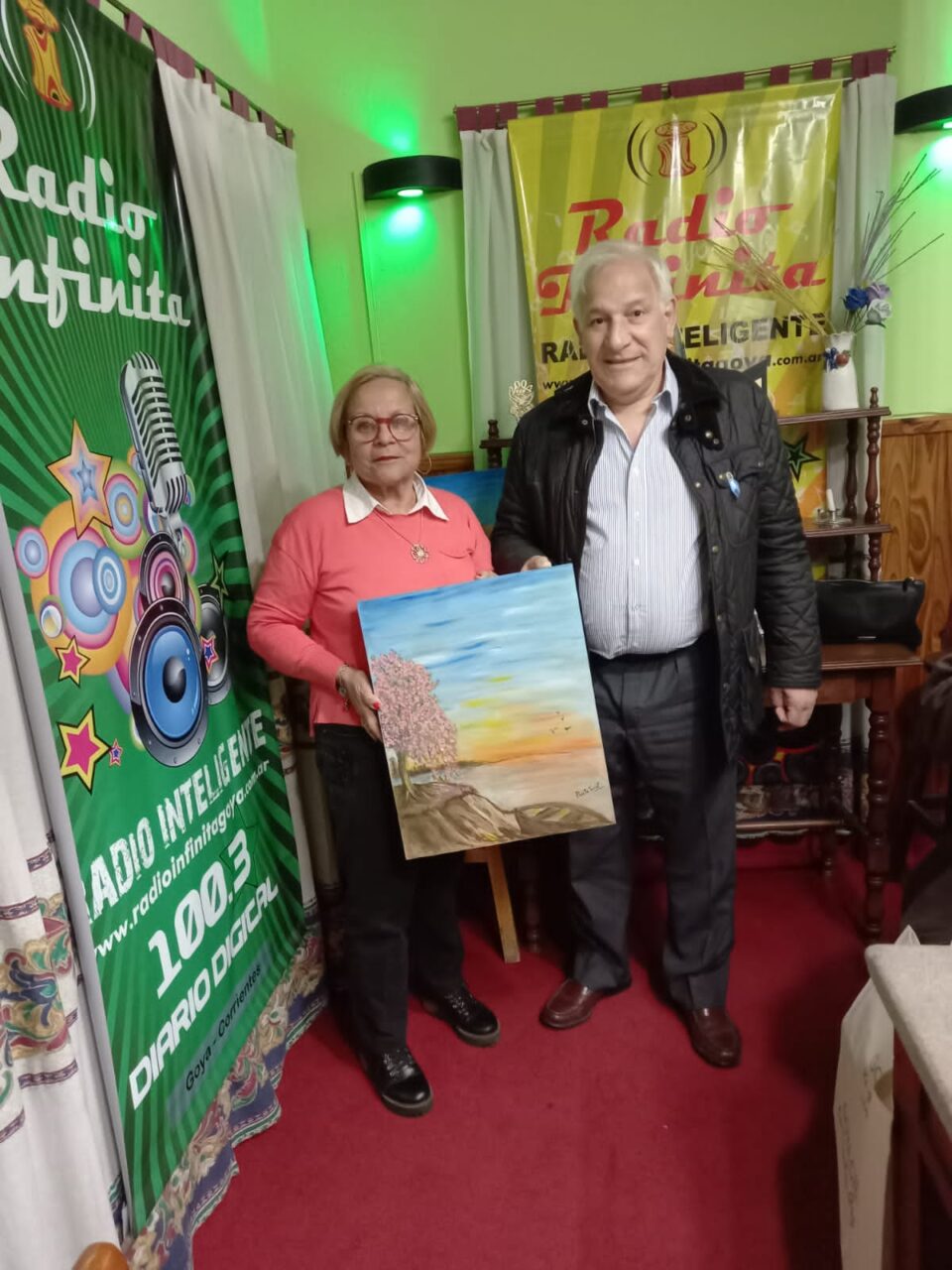 En virtud de tan distinguidas visitas, la conductora radial sacó a relucir su faceta artística de pintora y las obras creadas se las obsequió al Lic. Manuel Belgrano, el Chozno del General y al escritor.