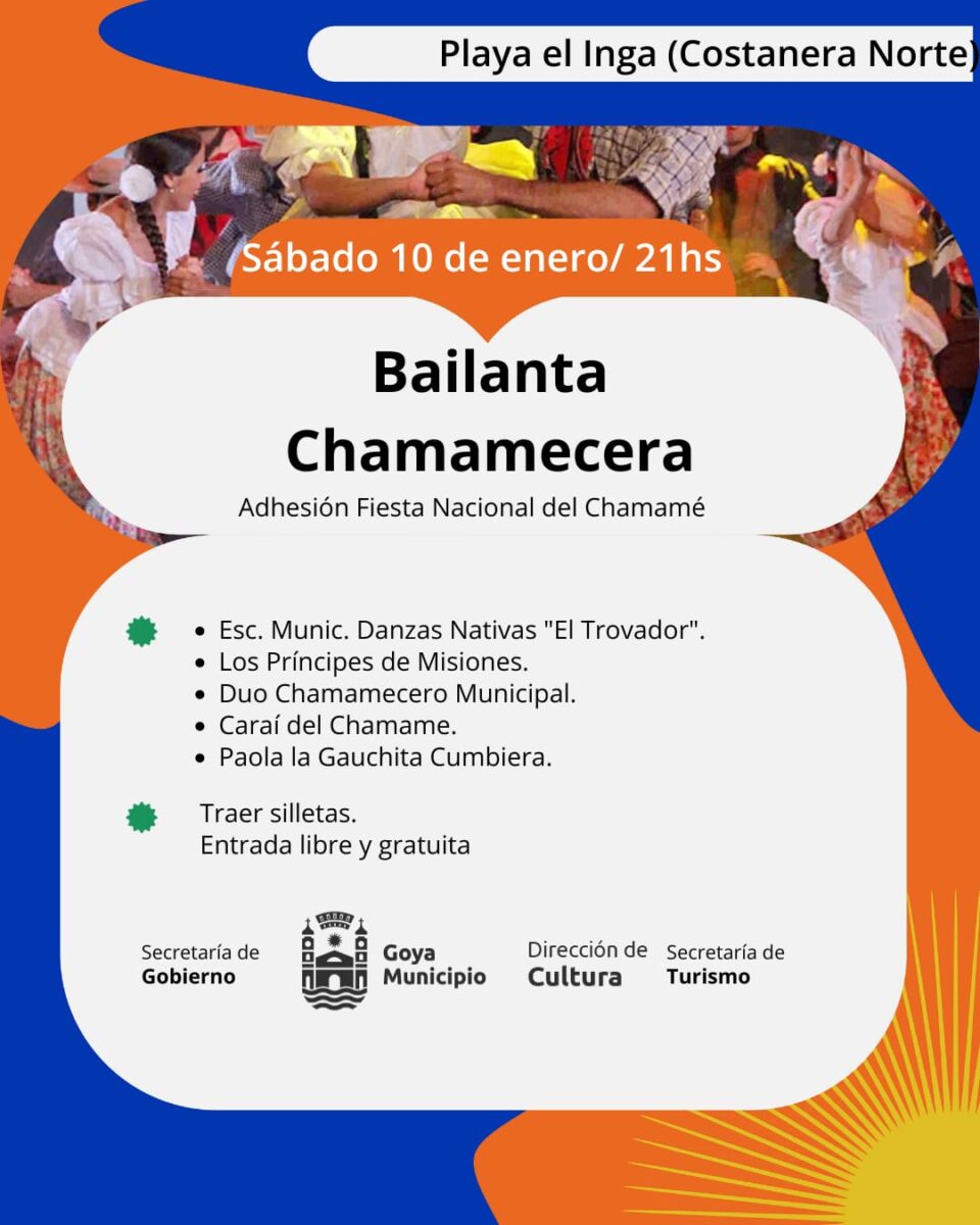 La bailanta se realiza en adhesión a la Fiesta Nacional del Chamamé; que como viene ocurriendo los últimos años, lleva adelante espectáculos itinerantes. En este caso, del escenario “Osvaldo Sosa Cordero” del anfiteatro Mario del Tránsito Cocomarola, al escenario de playa El Inga.