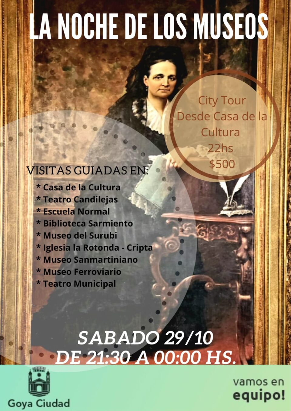 Este sábado 29 se realiza en Goya la Noche de los Museos y se anticipa que tendrá igual o mayor demanda que el año anterior. Las Direcciones de Cultura y de Turismo junto a los guías de Payé Turismo prevén será amplia la convocatoria atento a que un interesante número de interesados ya realizó su reserva para el recorrido que, este año, se ofrece además realizarlo en colectivo.