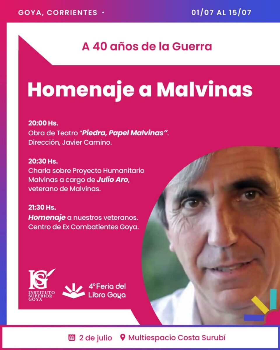 El conflicto de Malvinas no quedó fuera de la agenda de los organizadores de la Feria del Libro de Goya y decidieron que una de las temáticas destacadas de la jornada del sábado 2 sea precisamente ésta.