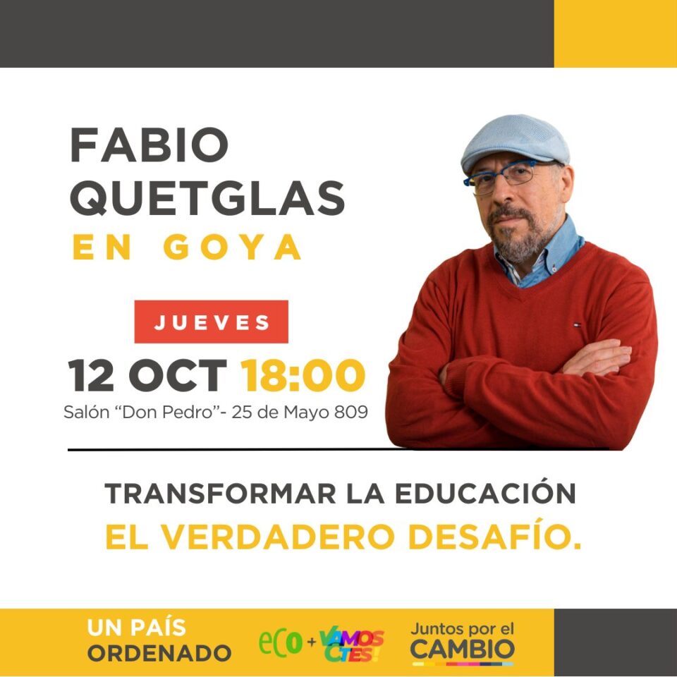 Se invita a la charla abierta “Transformar la educación, el verdadero desafío” que brindará Fabio Quetglas, diputado nacional y vocero de educación de la candidata presidencial Patricia Bullrich.