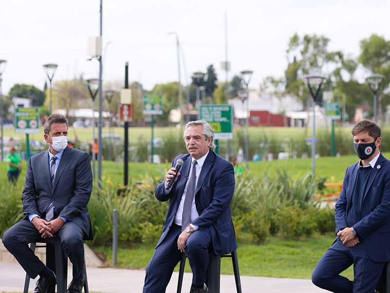 Alberto Fernández realizó un acto este lunes en el partido bonaerense de Merlo, en donde presentó el nuevo Programa de “Paradas Seguras”.