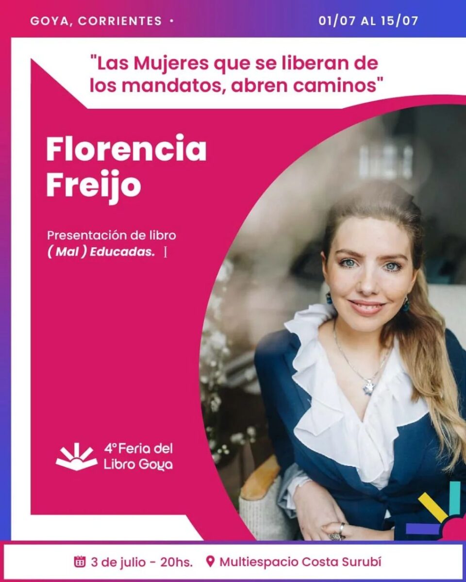Con este análisis, Freijo nos invita a escucharla este domingo 3 de junio desde las 20 horas en el Multiespacio de Costa Surubí, lugar donde va a estar no solo disertando sino también firmando su obra: (Mal) Educadas.