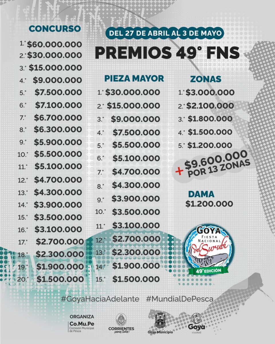NoticiasFlyer oficial y grilla de premios de la 49ª Fiesta Nacional del Surubí 23 febrero, 202623 febrero, 2026 El río nos espera, la pasión nos convoca y Goya late al ritmo del Mundial de Pesca. La cuenta regresiva ya arrancó: ¡Goya se prepara y el mundo del surubí nos vuelve a encontrar!