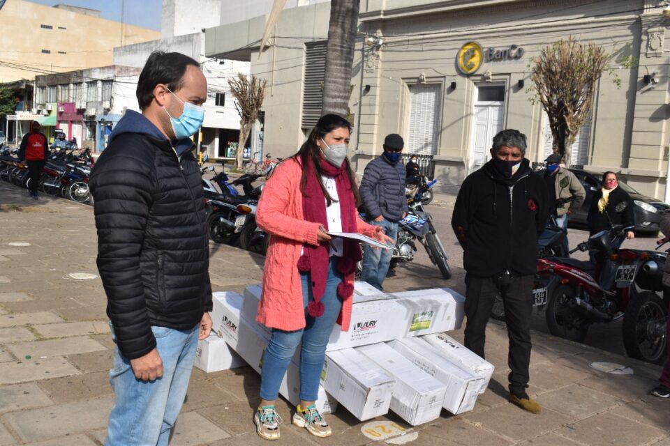 Por otra parte, a Cristina Medina, que tiene su local de belleza y peluquería se hizo entrega de insumos y elementos para ese emprendimiento.