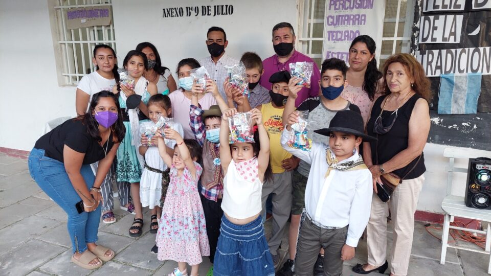 En la tarde los chicos lucieron vestimentas acordes al festejo por la tradición, compartieron una rica merienda, se deleitaron con una rica torta hecha por la presidente del barrio y bailaron chámame.