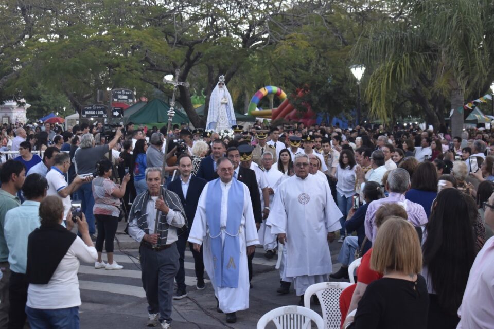 La misa central fue presidida por el Obispo Emérito de la Diócesis Monseñor Ricardo Faifer, quien saludó por la alegría e intensidad vivida la fiesta, para marcar la “Alegría de estar juntos celebrando la fiesta de la Virgen del Rosario, fijando la mirada en María que nos muestra a su Hijo, Jesús, a quien ella tiene en sus brazos para darlos a cada uno de nosotros.