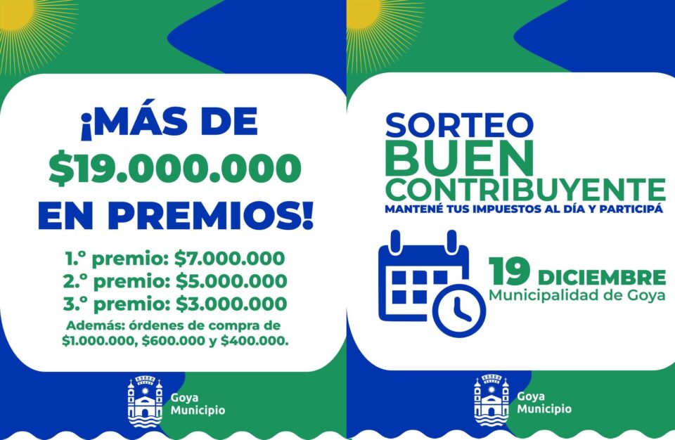 El Municipio de Goya impulsa este programa con el objetivo de reconocer e incentivar a los vecinos que cumplen puntualmente con sus obligaciones tributarias (impuesto inmobiliario, automotor, motovehículos y tasas por servicios).