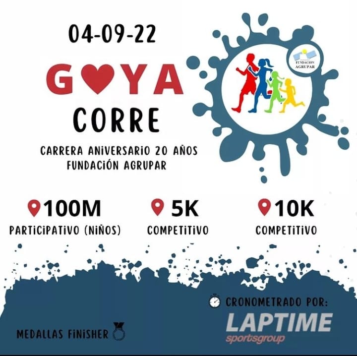 Se acerca la segunda edición del “Goya Corre”, esta vez en conmemoración de los 20 años de FUNDACIÓN AGRUPAR. Este evento se realizará el 4 de septiembre de este año en el Predio Costa Surubí, y será la segunda prueba desde la realizada en septiembre del 2018.