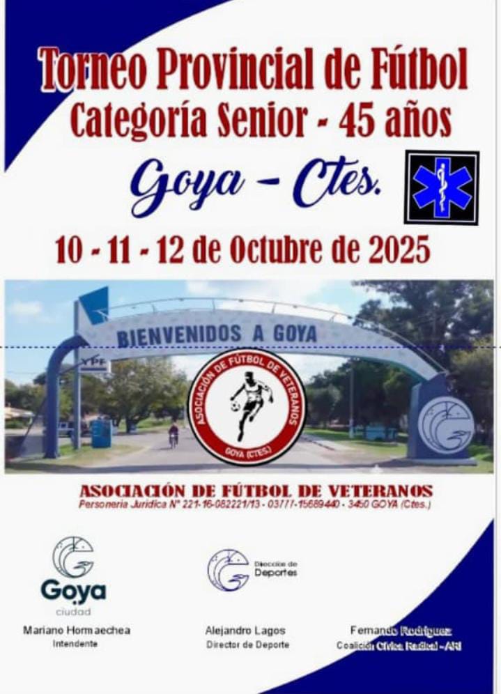 El torneo Senior de Fútbol en la Categoría 45 años, es organizado por la Asociación de Fútbol de Veteranos de nuestra ciudad, con el apoyo y acompañamiento de la Municipalidad de Goya