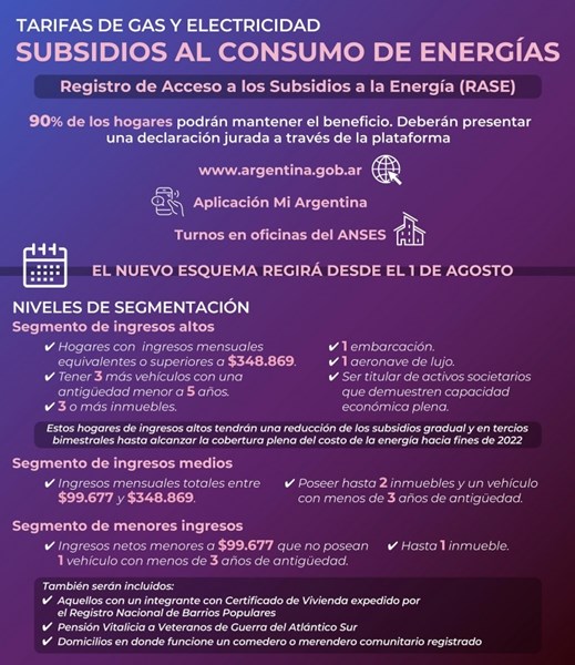 En tanto, los hogares con personas electrodependientes, inscriptos en el Registro de Electrodependientes, quedarán exceptuados de la segmentación de tarifas de luz y no deberán anotarse en el RASE, aunque sí tendrán que hacer el trámite para el servicio de gas.