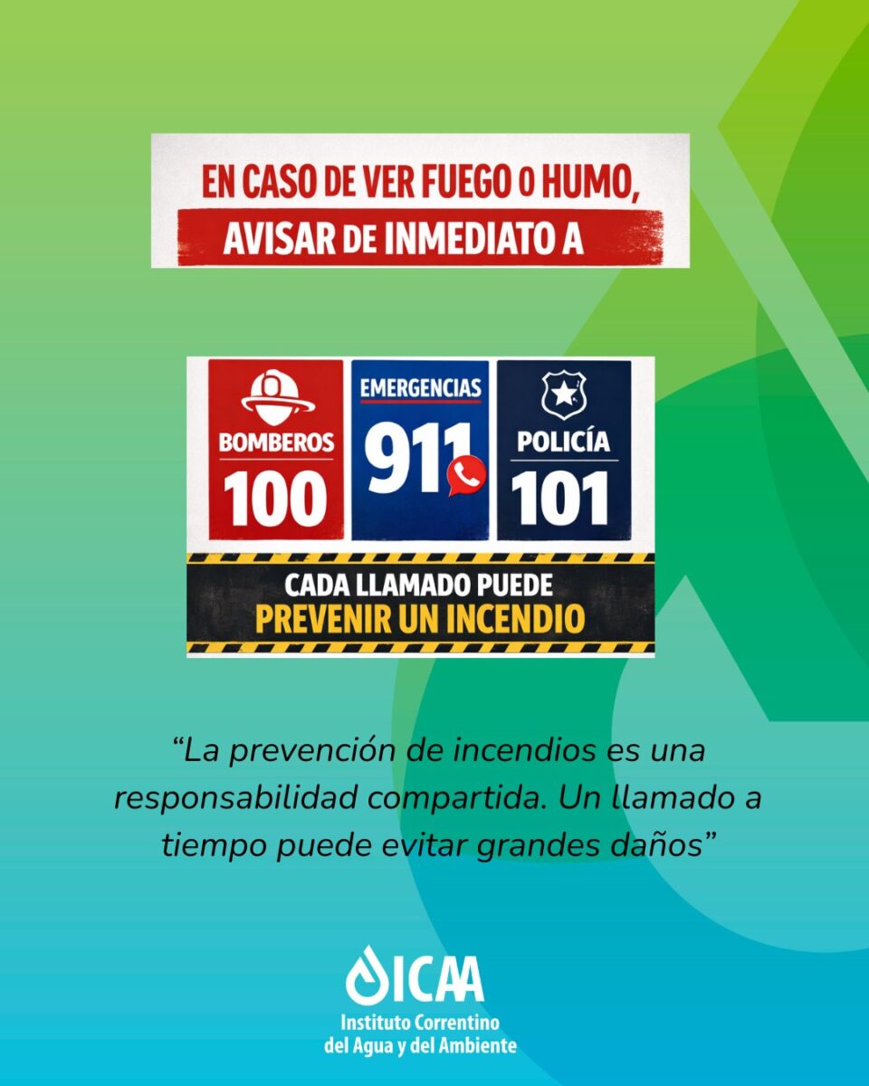 Ante el incremento del riesgo de incendios rurales y forestales en distintos puntos de la provincia, el Instituto Correntino del Agua y del Ambiente (ICAA) recuerda la importancia de extremar las medidas de prevención para proteger el ambiente, los recursos hídricos, la producción y la seguridad de las personas.