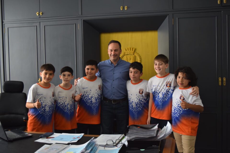 La visita al despacho municipal fue un momento muy especial para los pequeños jugadores puedan tener una foto junto al intendente Mariano Hormaechea, quienes compartieron la emoción con algunos de sus padres. Para muchos de ellos, conocer al intendente y recibir su apoyo era un sueño cumplido antes de la gran cita futbolera.